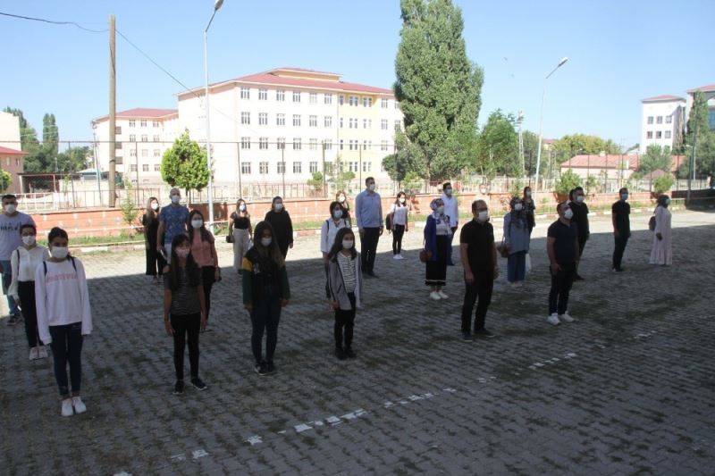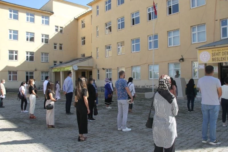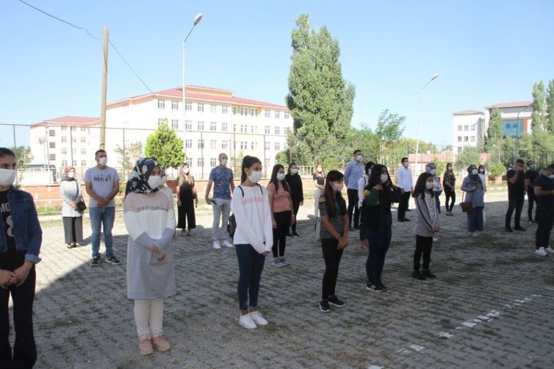 Muş’un Malazgirt ilçesinde 2020-2021 eğitim öğretim yılı nedeniyle ilk ders zili çalınarak İstiklal Marşı okundu.