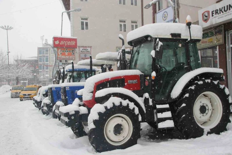 Belediye ekipleri ilçe merkezine topladıkları kar kütlelerini ise araçlarla ilçe dışına çıkarıyor.
