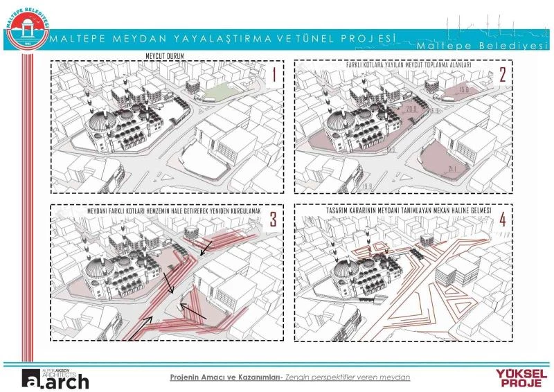 Maltepe Meydan Yayalaştırma ve Tünel Projesi’nin ilk etabı başladı. İstanbul Büyükşehir Belediyesi tarafından gerçekleştirilecek çalışma kapsamında Bağdat Caddesi ile Maltepe merkez bölgesinde 600 metrelik tünel ile trafik yer altına alınacak. Bu sayede Maltepe 18 bin metrekarelik yepyeni ve modern bir meydana kavuşacak. Yeni yapılacak meydan tamamen yayalara açık olacak.