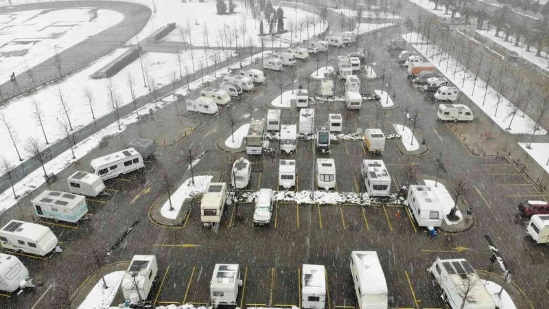 Şehrin yoğun temposundan uzaklaşarak dinlenmek ve rahatlamak için Maltepe sahilinde bulunan Karavan Parkı’na karavanları ile yerleşen vatandaşlar, denizin yakınında yaşadıkları karavanlarda karın keyfini çıkarmayı da ihmal etmiyor.