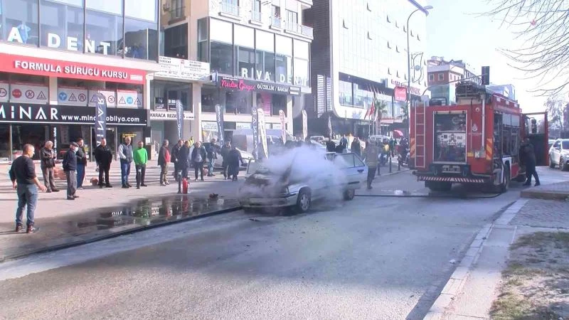 Maltepe’de kaputu açılmayan otomobil alevlere teslim oldu