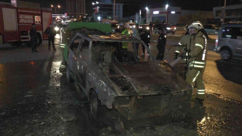 Maltepe’de seyir halindeki otomobil alev alev yandı