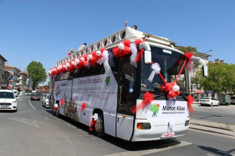Mamak Belediyesi Ramazan Bayramı’nda tam kapanma dolayısıyla uygulanan sokağa çıkma yasağında bayram eğlencesini vatandaşların ayağına götürdü. Üstü açık, balonlarla süslenmiş bir otobüsün üzerinden palyaço, halk oyunları ekibi, Ramazan davulcusu ve çalınan bayram müzikleri ile tüm Mamak’ı turlayarak, vatandaşların bayramını kutladı.