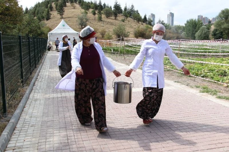Mamak Üreğil Millet Bahçesi’nde daha önce ekimi yapılan domatesler, Kadın Kooperatifi tarafından toplanarak salça yapıldı.