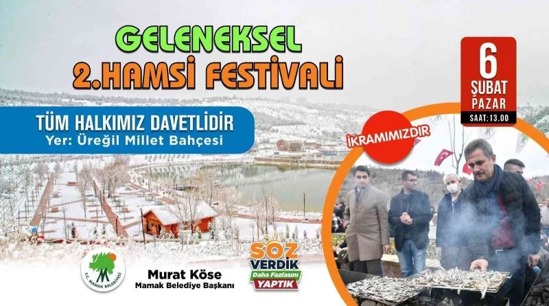 Mamak Belediyesi, Mamaklıları Geleneksel 2. Hamsi Festivali ile bir araya getirecek.6 Şubat Pazar günü saat 13.00’da, Ankara’nın ilk millet bahçesi olan Üreğil Millet Bahçesi’nde bu yıl ikincisi düzenlenecek festivalde vatandaşlar, çeşitli etkinliklerle güzel bir hafta sonu geçirmenin de keyfini yaşayacak.