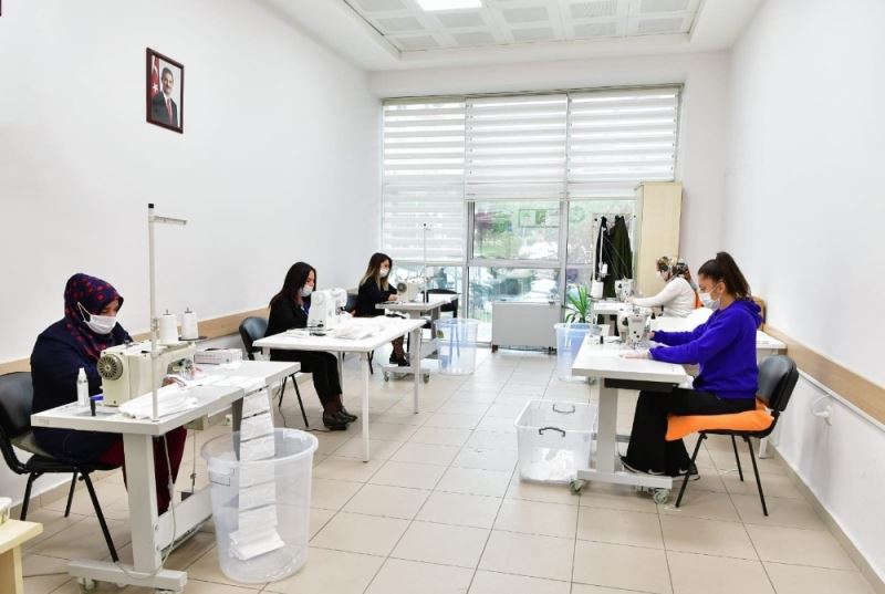 Mamak Belediyesi tarafından kurulan maske imalathanesinde gönüllülük esasıyla çalışan 40 kişilik ekip, günlük ortalama 6 bin maske üretiyor.