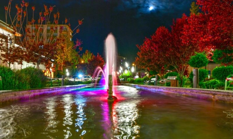 Mamak’ta park, ağaç ve sokaklara takılan ışıklar geceleri görsel bir şölen oluşturuyor.