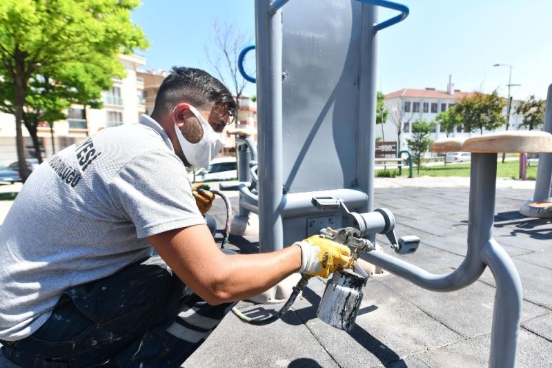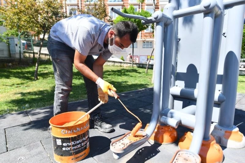 Parklarda zamanla tahrip olan hava koşulları ve kullanımdan dolayı yıpranan çocuk oyun grupları ve spor aletlerinin yenileme ve bakım çalışmaları yapılmaya başlandı. Belediye Çevre Koruma ve Kontrol Müdürlüğüne bağlı ekipler periyodik olarak ilçe genelinde yaptığı yenileme çalışmalarında parklardaki oyun ve spor aletleri ile birlikte tabelalarını bakımdan geçirerek boyadı. Vatandaşların spor yapmasına olanak veren spor aletleri, kış aylarının ardından boyanarak ve sağlamlaştırılarak spor yapmak için ideal hale getirildi. Ekipler aynı zamanda görüntü kirliliği oluşturan duvarlardaki boyaları da sildi.