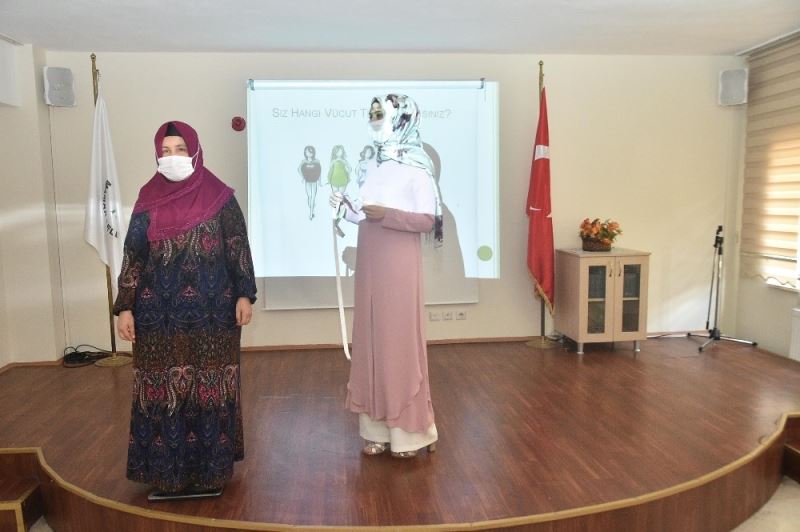 Beslenme Uzmanı Sümeyye Betül Türk tarafından verilen seminerde beslenme tanımı, yetersiz ve dengesiz beslenme alışkanlıkları ve buna bağlı olarak gelişen hastalıklar, beslenme faktörleri, obezite, yanlış diyetler, kahvaltı tüketiminin önemi ve fiziksel aktivitenin öneminin yanı sıra sağlıklı beslenme önerileri anlatıldı. Sağlıklı yaşam için fiziksel aktivitenin beslenme ve uyku kadar önemli olduğunu vurgulayan Beslenme Uzmanı Türk, “Düzenli egzersiz ile yeterli ve dengeli bir beslenme, sağlıklı yaşamın vazgeçilmez unsurlarındandır. Aşırı tuz tüketimi sağlığımızı olumsuz etkilemektedir. Obezite, küresel bir halk sorunudur. Obezite, başlı başına bir hastalık olduğu gibi kalp hastalıkları, diyabet, hipertansiyon gibi kronik hastalıklarda zemin hazırlayarak sağlığımızı ciddi bir şekilde tehdit etmektedir. Obezitenin önlenmesi için yeterli ve dengeli beslenme ile fiziksel aktivitenin arttırılması gerekmektedir” dedi. Seminerin çok faydalı geçtiğini söyleyen kursiyerler ise emeği geçen herkese teşekkür etti.
