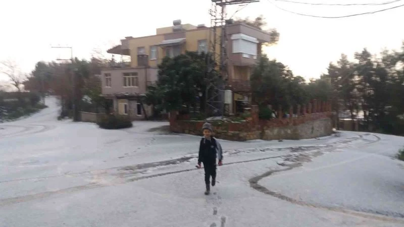 Antalya’nın Manavgat ilçesine bağlı Kızılağaç Mahallesinde sabah saatlerinde etkili olan dolu yağışı, mahalleyi adeta beyaz örtüyle kapladı.