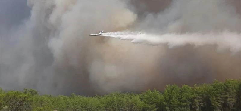 İlçede 5 gündür devam eden yangına, havadan ve karadan müdahale devam ediyor. Düşük nem ve rüzgarın etkisiyle yangın geniş bir alana yayıldı.