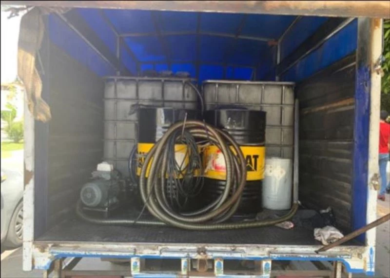 Sanayi Kavsagi'nda durdurulan kapali kasa minibüste yapilan aramada bin 200 litre kaçak akaryakit, plastik yer üstü tanki ve pompa ele geçirildi.
