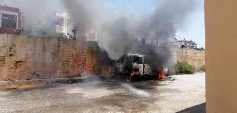 Manavgat’ta park halindeki minibüs cayır cayır yandı