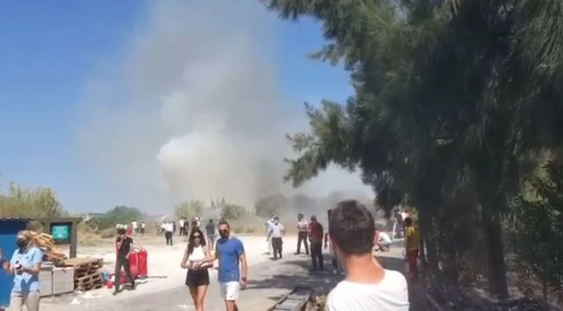 Yangın, otellerin bulunduğu Çolaklı-Gündoğdu Mahallesi turizm yolu yakınlarında çıktı. Makilik ve sazlık alandan dumanların geldiğini gören vatandaşlar, durumu 112 Acil Çağrı Merkezine bildirdi. İhbar üzerine olay yerine gelen itfaiye ekipleri, yangına kısa sürede müdahale etti. Yangın dolayısıyla çevrede bulunan turistler ve vatandaşlar kısa süreli panik yaşadı. Yangın ekiplerin ve vatandaşların müdahalesi ile söndürüldü. Yaşanan o anlar cep telefonu kamerasıyla kaydedildi. Polis yangının çıkış nedeni ile ilgili inceleme başlattı.