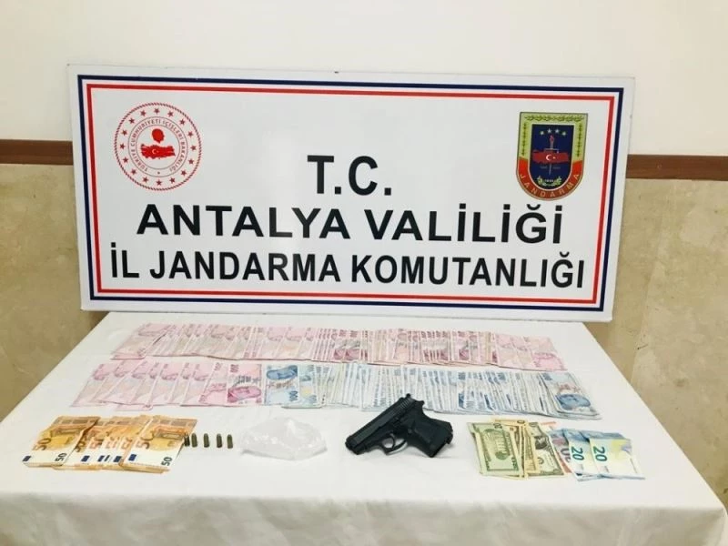 Antalya’da istihbarat çalışması sonucu jandarma tarafından bir eve yapılan baskında uyuşturu madde, silah ve para ele geçirildi. Olayla ilgili iki kişi gözaltına alındı.