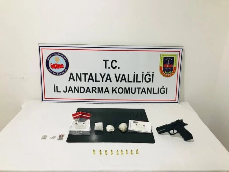 Manavgat İlçe Jandarma Komutanlığınca Ulukapı Mahallesi’nde, uyuşturucu ile mücadele kapsamında yapılan çalışmalar neticesinde bir evde uyuşturucu kullanıldığı ihbarı alındı. Uyuşturucu kullanıldığı tespit edilen evde S.A., E.M. S.G. ve Ş.F.Ö.’nün uyuşturucu madde bulundurdukları tespit edildi. Bunun üzerine evde yapılan aramada, 100 içimlik kağıda emdirilmiş bonzai, 16 adet uyuşturucu hap, 100 adet kenevir tohumu, 1 adet 9 milimetre tabanca, 17 adet 9 milimetre fişek ele geçirildi.