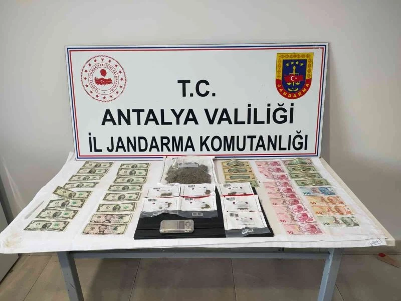 Antalya’da jandarma ekipleri, 2 şüpheli şahsın evine uyuşturucu operasyonu gerçekleştirdi. Düzenlenen operasyonda, bin 120 gram skunk, 1 adet hassas terazi, 196 dolar ve 320 TL ele geçirildi.