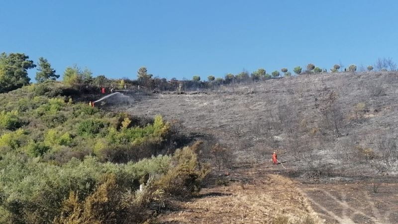 Antalya’nın Manavgat ilçesinde tarım arazileriyle orman arazisinin birleştiği noktada çıkan yangın uzun uğraşlar sonunda kontrol altına alınırken, yangında zeytin ağaçları zarar gördü.