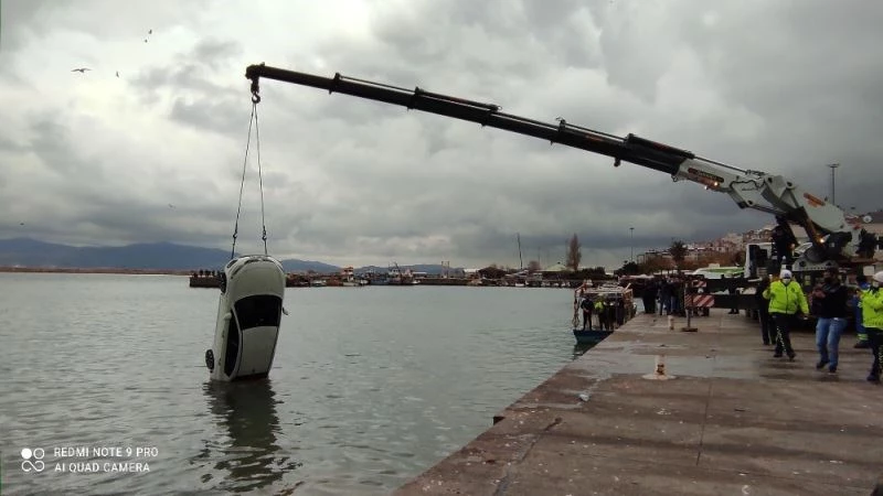 Balıkesir’in Bandırma ilçesinde Su Ürünleri Hali içerisine park ettiği otomobili ile manevra yapmak isteyen bir kişi aracıyla birlikte denize düştü. Aracın sürücüsü vatandaşların yardımıyla sudan çıkarılırken, sulara gömülen araç da vinç marifetiyle karaya çıkarıldı.