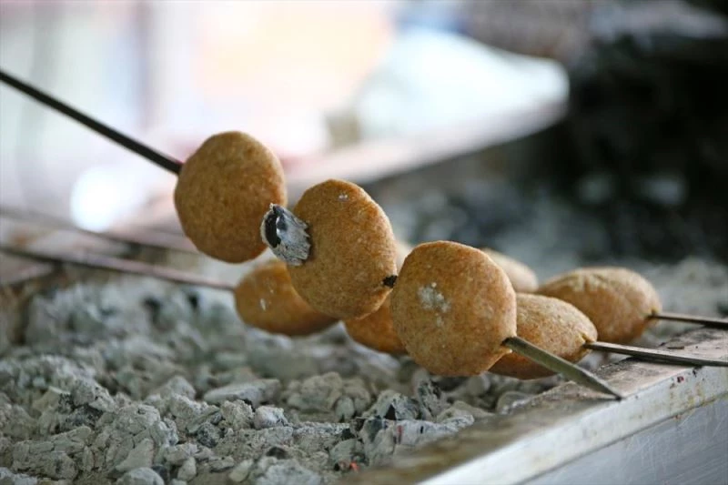Usta Fatih Cavlak, şişe taktığı içli köfteleri mangal ateşinde pişirip, bazı yeşillikler, yağ ve baharat içeren özel sosla servis ediyor.