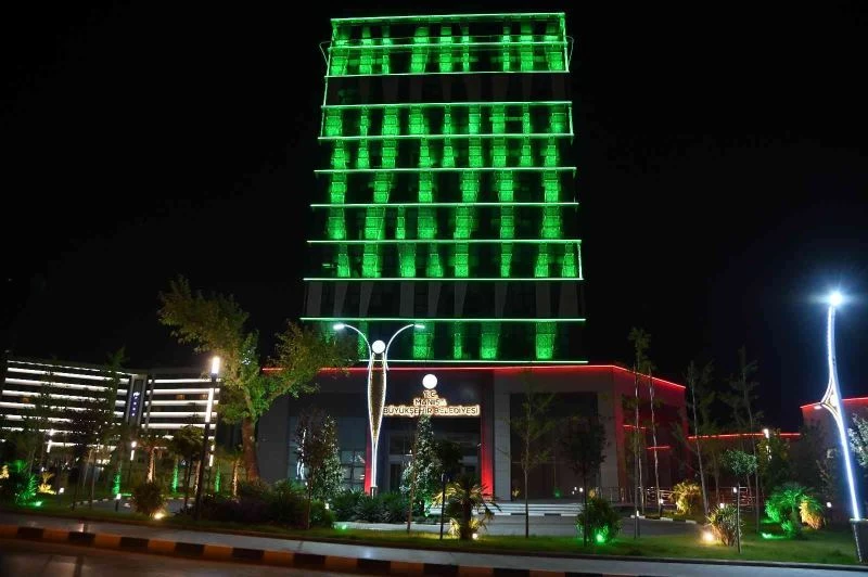 Manisa Büyükşehir Belediye binası çölyaklılar için yeşil renge büründü