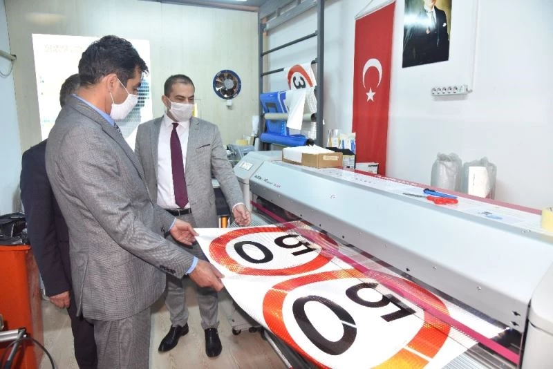 Manisa Büyükşehir Belediyesi, trafik akışının güvenli olması amacıyla il genelinde sorumluluğunda bulunan yollarda montajını yaptığı uyarıcı ikaz levhalarını, kendi makineleriyle üretiyor. Hizmet alım yöntemi yerine, kendi dijital baskı makinesiyle uyarıcı ikaz levhaları üreten Manisa Büyükşehir Belediyesi, böylelikle kurumun bütçesinden tasarruf yapıyor.