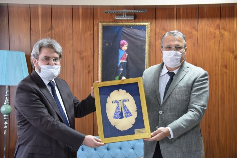 Geçtiğimiz aylarda Manisa İl Müftülüğüne atanan Mustafa Soykök, kendisini ziyaret ederek hayırlı olsun dileklerini ileten Yunusemre Belediye Başkanı Dr. Mehmet Çerçi ile bir araya geldi. Ziyarette İl Müftüsüne, Müftü Yardımcısı Ömer Kayhan ve Yunusemre İlçe Müftüsü Mehmet Nedim Bakır eşlik etti. Manisa’da güzel hizmetler yapma gayretinde olduklarını dile getiren İl Müftüsü Soykök, çalışmaları hakkında Başkan Çerçi’ye bilgi verdi. Ziyaretten duyduğu memnuniyeti dile getiren Belediye Başkanı Çerçi ise, Mustafa Soykök’e yeni görev yerinde başarılar diledi. İl Müftüsü Soykök günün anısına Başkan Çerçi’ye Kuran-ı Kerim; Belediye Başkanı Çerçi de Soykök’e tablo hediye etti.