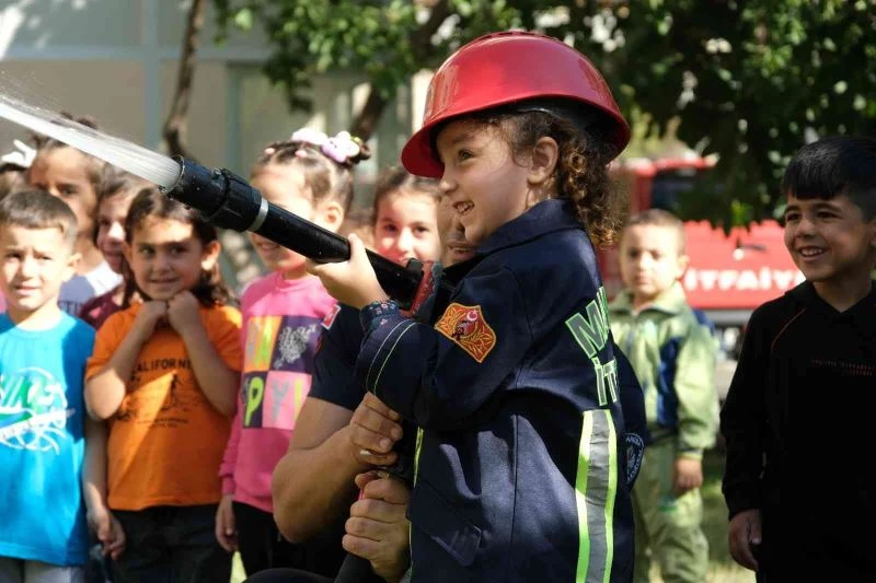 İtfaiye Haftası dolayısıyla Manisa Büyükşehir Belediyesi İtfaiye Dairesi Başkanlığını ziyaret eden minik öğrenciler, hem itfaiyenin çalışmaları hakkında bilgi aldı hem de itfaiye üniforması giyerek su sıktı.