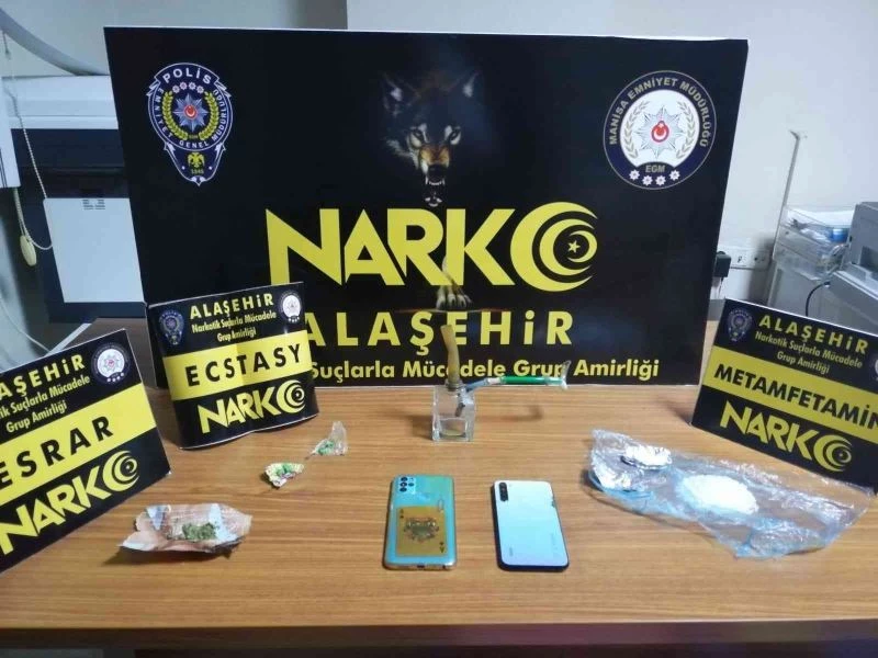 Alınan bilgiye göre, Alaşehir ilçesinde İl Emniyet Müdürlüğüne bağlı Narkotik Şube Müdürlüğü ile İlçe Emniyet Müdürlüğüne bağlı Narkotik Suçlarla Mücadele Grup Amirliği ekipleri bir otomobilde uyuşturucu sevkiyatı yapıldığı istihbaratı üzerine harekete geçti. İlçeye bağlı Killik Mahallesi’nde durdurulan araç içerisinde 38,06 gram metamfetamin, kağıda sarılı 1.49 gram esrar, 6 adet ekstazi hap ve 1 adet uyuşturucu içme aparatı ele geçirildi. Araç içerisinde bulunan O.M. (22) ve B.K. (26) gözaltına alındı.