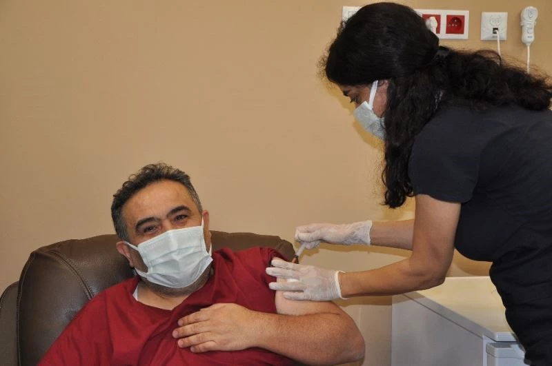 Manisa Şehir Hastanesinde sağlık çalışanlarına aşı vuruldu