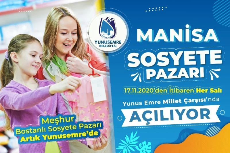 Türkiye’nin en modern 2 katlı kapalı pazaryerini bünyesinde barındıran Yunus Emre Millet Çarşısı’nda Manisalıların çok istediği Sosyete Pazarı açılıyor. Birinci katta açılacak olan Manisa Sosyete Pazarı’nda kıyafetten ev gereçlerine, kozmetikten takıya, çantadan ayakkabıya marka ürünler uygun fiyata satışa sunulacak. Yunus Emre Millet Çarşısı ikinci katta ise her Salı kurulan sebze-meyve pazarı hijyenik bir ortamda kurulmaya devam edecek. Yunusemre Belediye Başkanı Dr. Mehmet Çerçi, “Yunus Emre Millet Çarşısı’nda yarın Manisa Sosyete Pazarı ilk kez açılacak. Bundan sonra her Salı açılacak olan pazarda tüm önlemler alınacak. Vatandaşlarımızdan ve esnaflarımızdan da maske-mesafe-temizlik kurallarına tavizsiz uymalarını rica ediyorum” dedi.