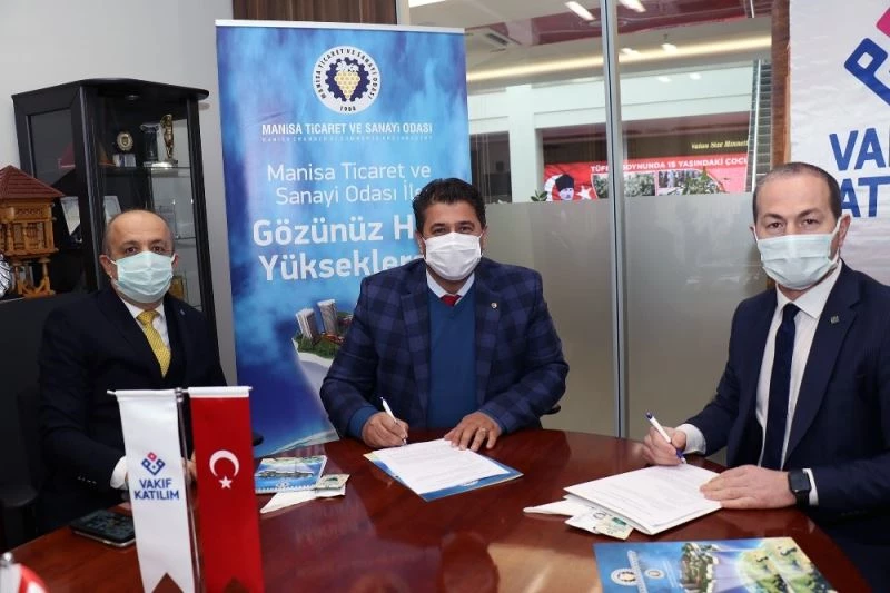 Manisa Ticaret ve Sanayi Odası ile Vakıf Katılım Bankası arasında iş birliği protokolü imzalandı. Protokol kapsamında Manisa TSO üyesi firmalara, belirlenen özel koşullarda finansmana erişimin kolaylaştırılması ve banka tarafından sağlanan diğer avantajlı ürün ve hizmetlerden kolaylıklar sağlanacak.
