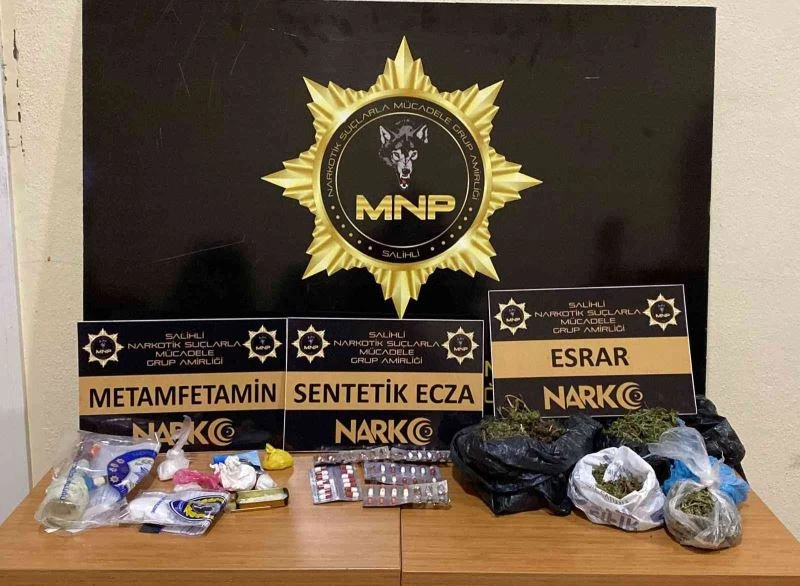 Manisa’nın Salihli ilçesinde polis ekipleri tarafından 11 adrese düzenlenen eş zamanlı operasyonda 339 gram esrar, 64 gram metamfetamin, 42 adet sentetik ecza, 10 gram bonzai ve 0,80 gram Afyon sakızı ele geçirildi. Olayla ilgili 11 şüpheli gözaltına alındı.
