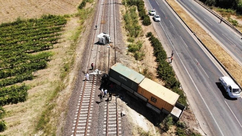 Manisa’nın Şehzadeler ilçesinde lastiği patlayan tır, sürücüsünün direksiyon hakimiyetini kaybetmesi sonucu refüjü aşarak karşı şeridin yanında bulunan tren yoluna uçtu. 3 gün içerisinde aynı yerde aynı şekilde gerçekleşen ikinci kazada yaralanan tır şoförü hastaneye kaldırıldı.