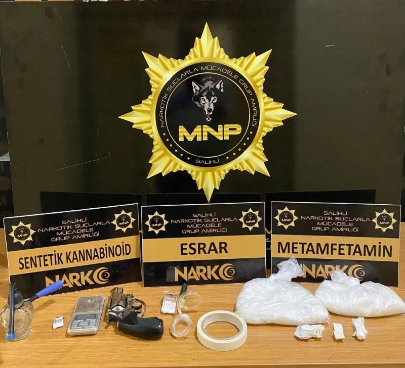 Salihli İlçe Emniyet Müdürlüğü Narkotik Suçlarla Mücadele Grup Amirliği ekipleri zehir tacirlerine göz açtırmıyor. Bir ihbarı değerlendiren ekipler, S.D.’ye ait ikamete yaptıkları baskında evde ve S.Ö., Ö.T. ile C.I. adlı şahısların üst aramasında 552,48 gram metamfetamin, 1,94 gram esrar, 0,63 gram bonzai, 1 adet hassas terazi, 1 adet uyuşturucu madde alımında kullanılan aparat, 1 adet kurusıkı tabanca ile 2 adet tabanca fişeği ele geçirdi. Gözaltına alınan 4 kişi, Emniyet Müdürlüğü’ndeki işlemlerinin ardından Salihli Adliyesine sevk edildi. Şüphelilerden S.D. ’uyuşturucu madde ticareti yapmak’ suçundan çıkarıldığı mahkemece tutuklanarak cezaevine gönderilirken, S.Ö., Ö.T. ve C.I. adli kontrol şartıyla serbest bırakıldı.
