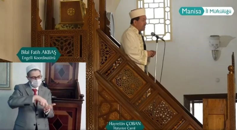Türkiye’de ilk kez Manisa’da cuma hutbesi, işaret dili ile sosyal medya üzerinden canlı olarak yayınlandı.
