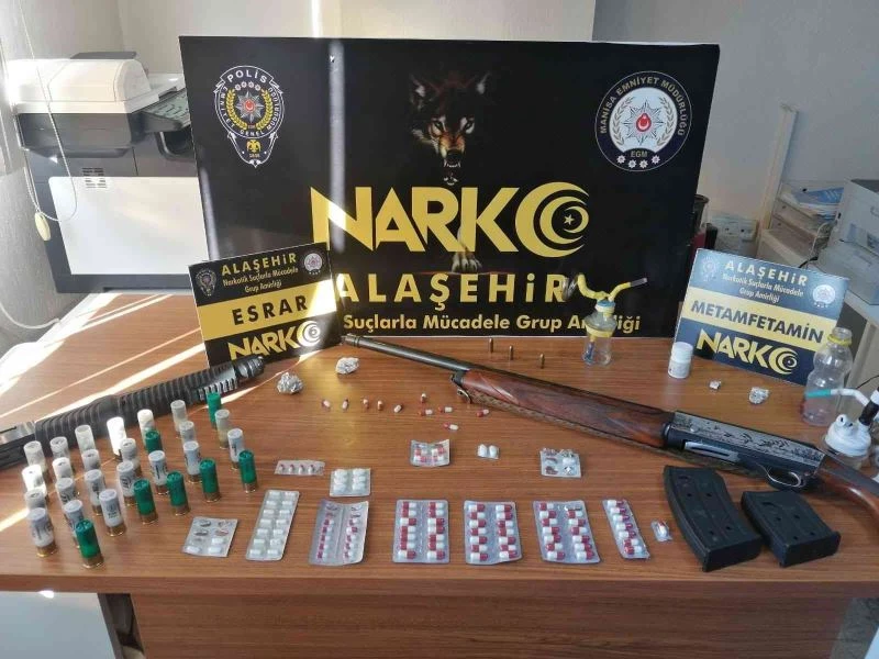 Manisa’nın Alaşehir ilçesinde emniyet güçleri tarafından 10 şahsa ait 11 ikamette eş zamanlı uyuşturucu operasyonu düzenlendi. Yapılan operasyonda çok sayıda uyuşturucuyla birlikte aralarında hakkında 18 yıl 10 ay kesinleşmiş hapis cezası olan bir kişiyle birlikte toplam 10 kişi yakalandı.