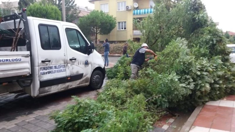 Manisa’da etkili olan fırtına bazı ağaçların devrilmesine neden oldu. Yunusemre Belediyesi de kenti etkisi altına alan fırtına dolayısıyla teyakkuza geçti. Fırtına nedeniyle zarar gören ağaçlar belediye ekiplerince kaldırılırken; ilçede vatandaşların herhangi bir sıkıntı yaşamaması için çalışmalar sürdürülüyor.