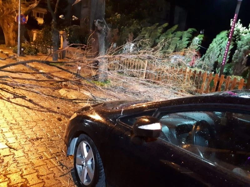 Manisa’da gece saatlerinde etkili olan fırtına ve sağanak yağış ağaçları devirirken bazı çatıların da uçmasına neden oldu.