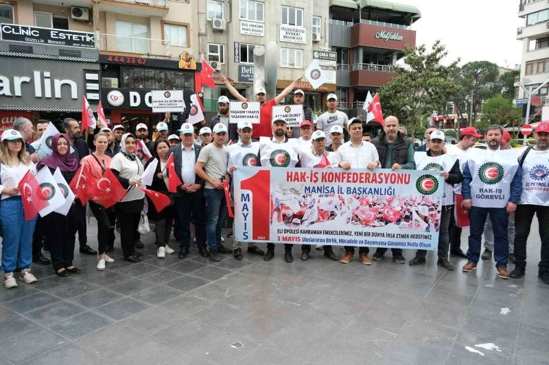 Hak-İş Konfederasyonuna bağlı sendikalar Manisa’da 1 Mayıs Uluslararası Birlik, Mücadele ve Dayanışma Günü dolayısıyla 15 Temmuz Demokrasi Meydanında taleplerini açıkladı.