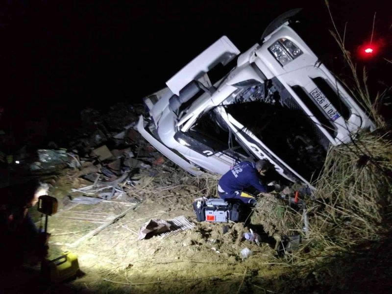 Manisa’da hurda yüklü tır devrildi: Sürücü yaralandı, yolcu öldü