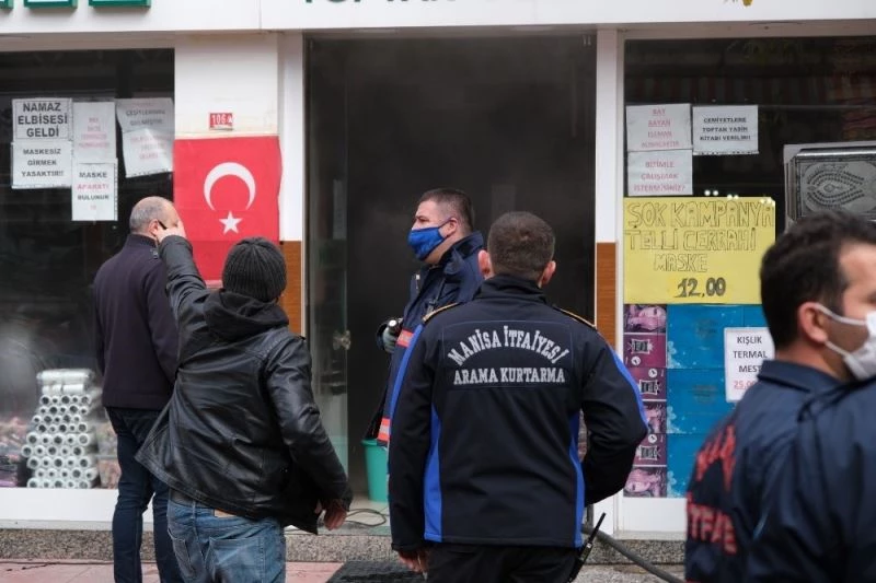 Manisa’da hac malzemeleri satışı yapan bir iş yerinde çıkan yangın korkuttu. Yoğun dumandan etkilenen bir kişiye sağlık ekipleri olay yerinde müdahale etti.
