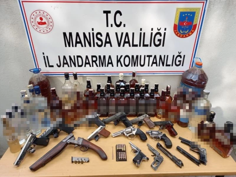 Manisa İl Jandarma Komutanlığınca yasadışı içki üretimi ve tüketiminden kaynaklanan ölüm olaylarının önlenmesi ve halk sağlığının korunması amacıyla yürütülen çalışma kapsamında Şehzadeler Merkez Jandarma Karakol Komutanlığı ve Manisa İl Jandarma Komutanlığı KOM Şube Müdürlüğü ekiplerince yapılan müşterek istihbarat çalışmaları neticesinde, Şehzadeler ilçesi Veziroğlu Mahallesinde kaçak alkollü içki üretiminin yapıldığı tespit edildi. Veziroğlu Mahallesinde ikamet eden O.Z. isimli şahsa ait bağ evinde yapılan aramada TAPDK bandrollü (42) şişe 70 cc’lik viski, (13) şişe 70 cc’lik rakı, (5) şişe 1,75 litrelik vodka, (20) litre şarap, (3) adet kuru sıkıdan dönme tabanca, (7) adet faturasız kuru sıkı tabanca, (1) adet namlusu kesilmiş av tüfeği, (8) adet kuru sıkı tabanca parçası ve (3) adet 7,65 mm çapında tabanca fişeği ele geçirildi.