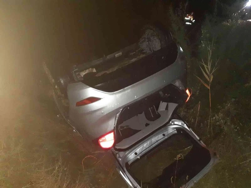 Manisa’da kontrolden çıkan otomobil şarampole devrildi