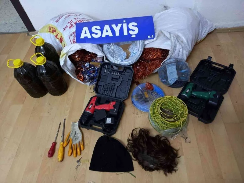 Bölgede yapılan araştırmada 2 çuval içerisinde bakır kablo, şarjlı el matkabı ve matkaba ait adaptör ele geçirildi.