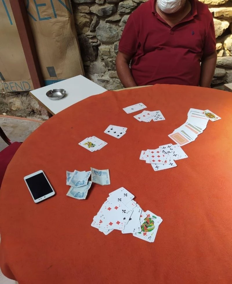 Alaşehir İlçe Emniyet Müdürlüğüne bağlı polis ekipleri bir ihbarı değerlendirerek, kıraathanede kumar oynayan şahısları suçüstü yakaladı. Polisler dün saat 12.30 sıralarında kıraathaneye yaptıkları baskında oyun masası üzerinde sigara paketi, kül tabağında sigara izmaritleri, 300 TL para ve iskambil kağıtlarını ele geçirdi. Polisler kumar oynayan 5 kişiye kişi başına bin 225 TL olmak üzere toplamda 6 bin 125 TL ceza kesti. İskambil kağıtları ve 300 TL muhafaza altına alınırken, Sarısu Mahallesi Atatürk Bulvarı üzerinde bulunan kıraathane sahibine de kumar oynamak için yer temin etmekten adli işlem yapıldı. Sosyal mesafeyi ihlalden ve kapalı alanda sigara içmek ve içirmekten de tutanak tanzim edildi.