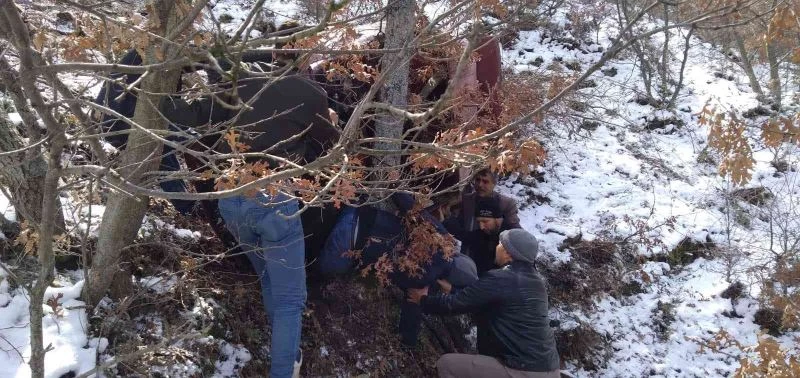 Kaza, Alaşehir ilçesine bağlı Karadağ Mahallesi Dikili Deresi mevkiinde meydana geldi. Edinilen bilgiye göre, Murat A. (38) idaresindeki Tofaş marka 64 DS 980 plakalı otomobil, karlı yolda sürücünün kontrolünden çıkarak yaklaşık 70 metrelik uçuruma yuvarlandı. Takla atan otomobildeki sürücü Murat A. araçtan dışarı fırlarken, Ali E. de ağaca çarparak duran araçta sıkıştı. Çevredekilerin haber vermesi üzerine olay yerine 112 Acil Servis, jandarma ve Manisa Büyükşehir Belediyesine bağlı itfaiye ekipleri sevk edildi. Ambulansla Alaşehir Devlet Hastanesi’ne kaldırılan Murat A. ve Ali E. tedavi altına alındı.