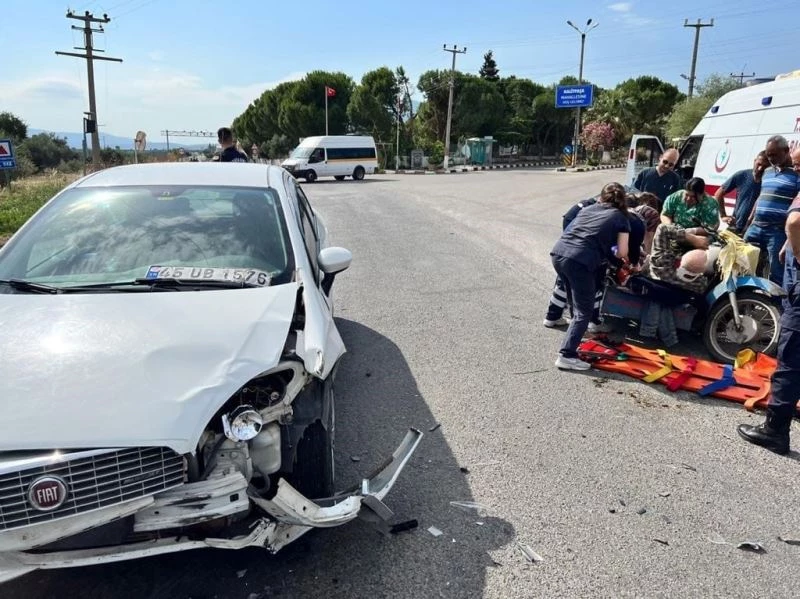 Manisa’nın Saruhanlı ilçesine bağlı Halitpaşa Mahallesi’nde saat 09.00 sıralarında Gölmarmara-Saruhanlı Karayolunda M.Y. (60) idaresindeki otomobil ile Saruhanlı istikametine doğru seyir halinde iken tali yoldan çıkan H.B. (59) idaresindeki tescilsiz ve plakasız motosiklet ile çarpıştı. Kazada motosiklet sürücüsü hafif şekilde sol bacak kısmından yaralandı. Yaralı adam ambulans ekipleri tarafından Saruhanlı Devlet Hastanesine sevk edilirken, burada yapılan tedavisinin ardından taburcu edildi.
