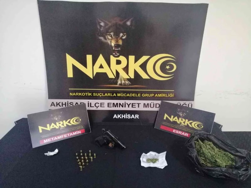 Manisa İl Emniyet Müdürlüğü Akhisar Narkotik Suçlarla Mücadele Grup Amirliği görevlilerince uyuşturucu veya uyarıcı madde ticareti yapan, nakleden ve kullanan şahıslara yönelik yapılan çalışmalarda Akhisar ilçesinde durdurulan bir araçta yapılan aramada; 144,46 gram esrar maddesi, 0,70 gram metamfetamin maddesi, 1 adet ruhsatsız tabanca ve 17 adet fişek ele geçirildi. Konuyla ilgili 4 şüpheli şahıs yakalanarak adli işlemlere başlandı.