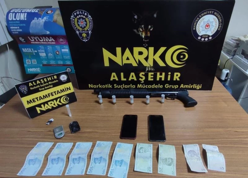 Manisa’nın Alaşehir İlçe Emniyet Müdürlüğü Narkotik Suçlarla Mücadele Grup Amirliği ekipleri tarafından uyuşturucu madde ticareti yaptığı istihbaratı üzerine A.Ç. isimli şahsın evine baskın düzenlendi. Evde yapılan aramalarda 4.12 gram metamfetamin maddesi ele geçirildi.